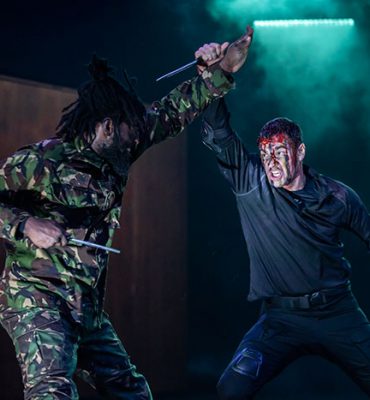 For this production Lucy worked closely with the set designer to provide an immersive experience for the audience, so that the whole auditorium and the audience were in the senate and that the battles scenes were threatening and happening all around them in a sensual experience. At times claustrophobic and others inclusive and collective.