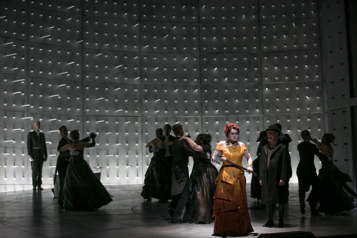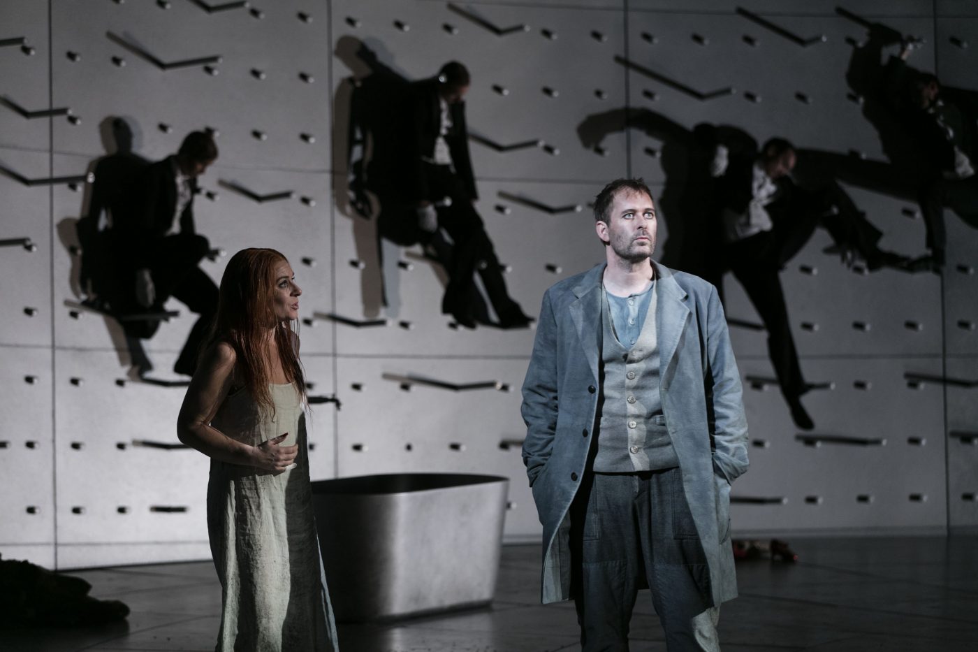 Collaborating closely with the whole creative team the lighting design used the stark and sweeping circularity of the set to enforce a paranoid and claustrophobic world. The lighting left the cast swirling in moving and encroaching shadows, perpetually playing with the sense of reality and paranoid dream. What shadows are real, the present and what is a memory of the past ?